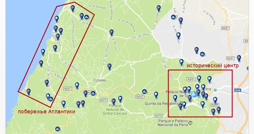 В списке городских туров вы сможете увидеть много любопытных предложений, но я советую наслаждаться этим местом не спеша. В солнечную погоду с точек обзора открывается вид на соседний Кашкайш и побережье Атлантики. Однако здесь можно прочувствовать и мистическую атмосферу, оказавшись в Синтре в один из туманных дней.