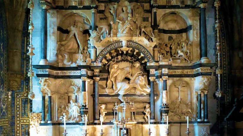 Удивительно, но прародительница этого величественного здания — часовня Богоматери — воссоздана на том месте, где она была по предположениям изначально. Её сводчатый потолок сохранил оригинальную плитку 16 века. Полюбуйтесь на алтарь — шедевр 16 века от француза Николау де Шантерена и витражи 19 века работы семьи Келлнеров.