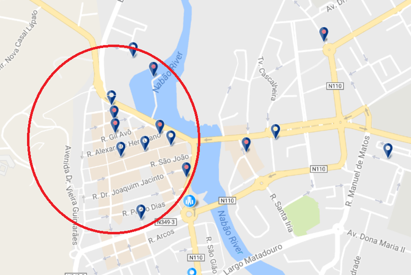 Этот небольшой провинциальный городок на реке Набан в 140 километрах от Лиссабона мало чем отличается от других маленьких городов Португалии: тихий, уютный, немного сонный. Красивая пешеходная зона, выложенная брусчаткой, некоторые фасады домов облицованы плиткой в традиционном стиле азулежу, многочисленные крошечные кафе с прекрасным свежесваренным кофе всего за 50 центов и пирожными с заварным яичным кремом.