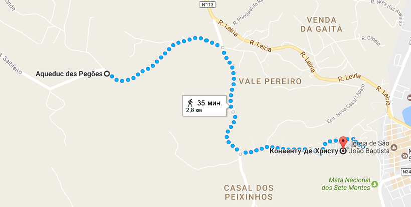 - На автобусе можно добраться только с двумя пересадками в городах Leiria и Caldas da Rainha. Ориентировочное общее время в пути — 3 часа 30 минут (уточнить расписание и купить билеты можно здесь):