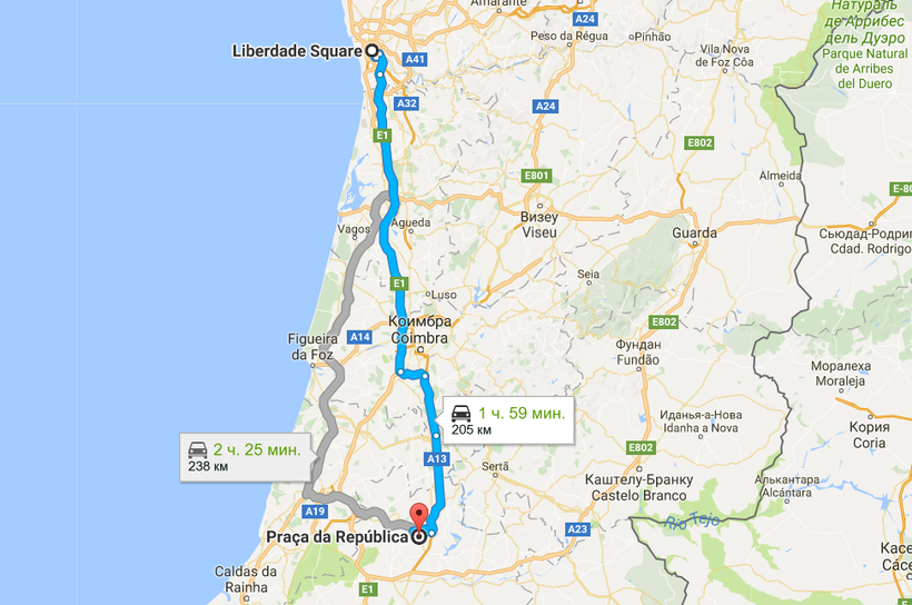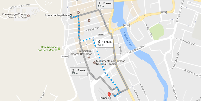 Как добраться в Томар из Лиссабона на машине, поезде и автобусе можно посмотреть здесь, ниже я расскажу вам о маршруте из Порту (200 километров).