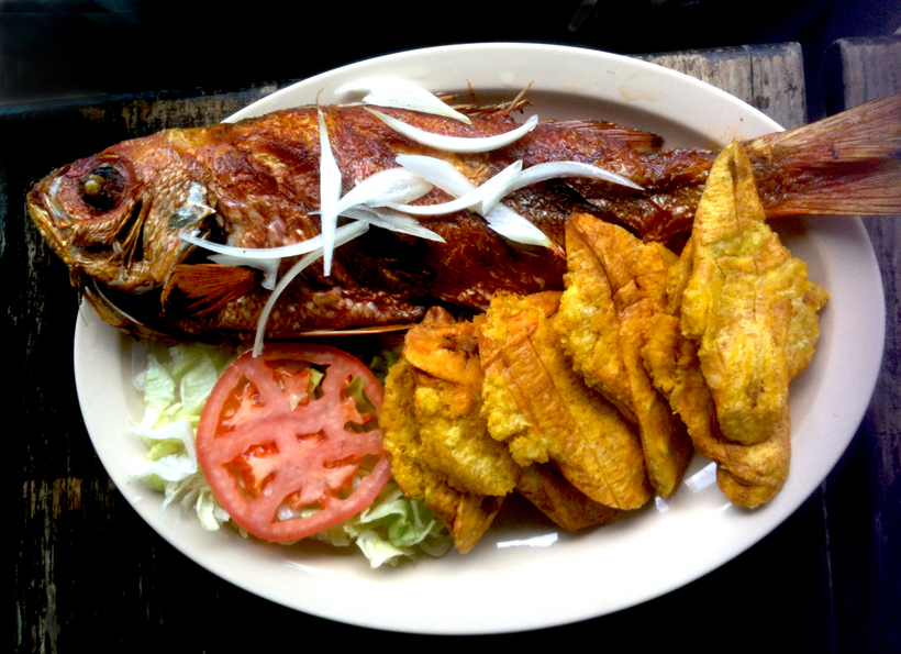 Чиллио Фрито (Chillo Frito). Жареный морской окунь с добавлением ароматных специй и приправ. Весь секрет блюда в приготовлении его целиком.