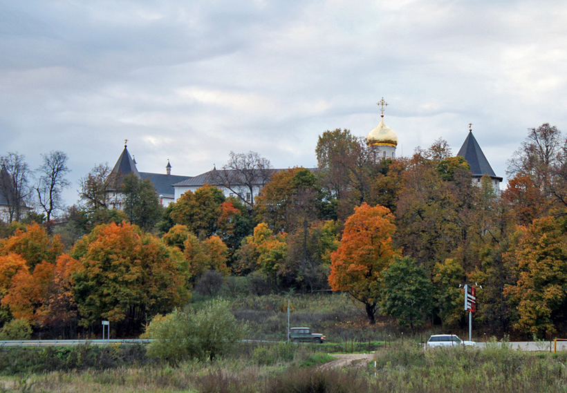С холма, на котором расположен монастырь, открывается отличный вид на живописные окрестности - долину Москвы реки и впадающую в нее речку Сторожку.