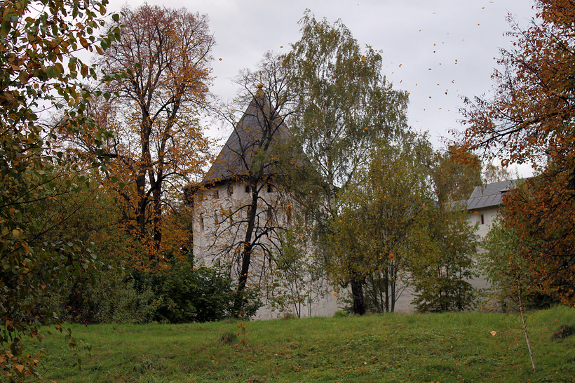 Так получилось, что в Саввино-Сторожевском монастыре я бывал аж четыре раза, причем, в разное время года. На мой взгляд, сюда лучше всего ехать золотой осенью, когда белокаменные стены монастыря оттеняются багрянцем и золотом осенней листвы.