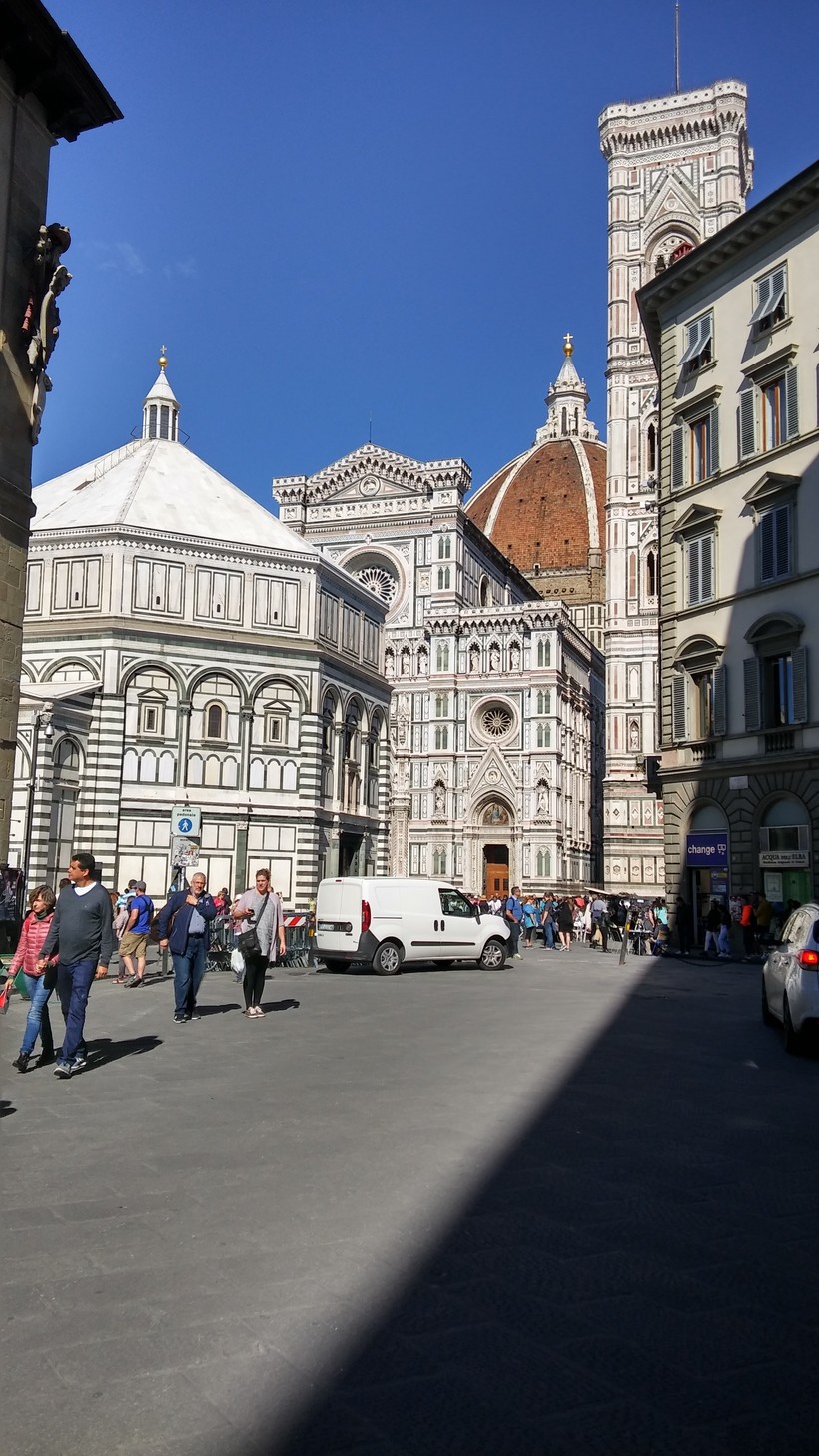 Сразу замечу: несмотря на исторический центр и на здания XIV-XV веков повсюду, несмотря на огромное количество народа, на совершенно узкие тротуары (их почти нет, есть какие-то полоски вдоль дороги), современные мотоциклисты в шлемах лихо гоняют по всем улицам Флоренции, и наша не стала исключением.