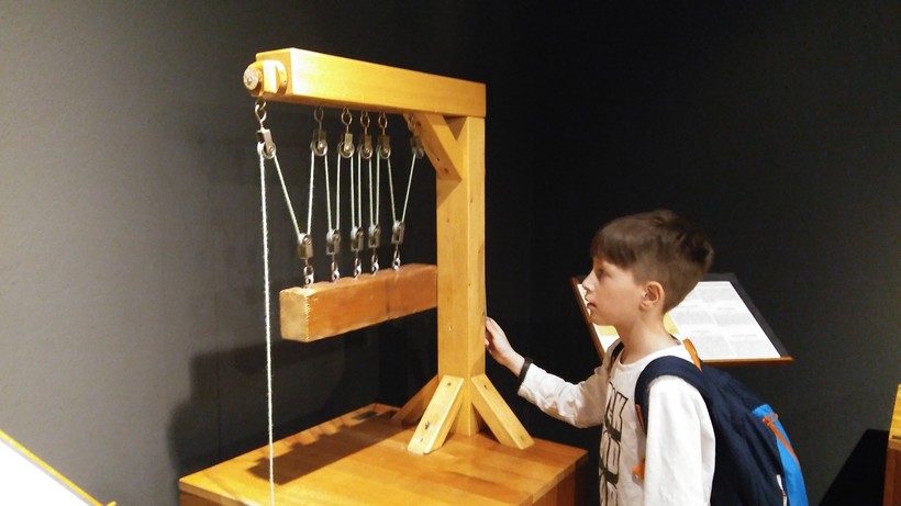Совсем маленьким детям 2-4-х лет, увы, такой музей не очень интересен. Все-таки залезать на экспонаты не разрешают, а очень хочется!:) Служители вежливо просят отойти. А вот для детей постарше музей познавателен: можно объяснять ребенку, что многие гениальные разработки да Винчи опередили свое время, можно понять, как работает тот или иной механизм, потрогать и пофотографировать его.