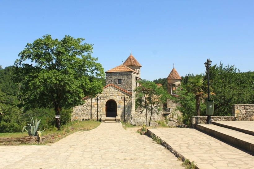Монастырь стоит на горе над рекой Рионе, а вокруг – зелень, тишина и красота. Второе название – монастырь Святых Давида и Константина, их мощи покоятся в стенах храма. Это мужская обитель, история которой начинается еще в 8 веке, тогда на этом месте была крошечная церковь, позднее арабы разрушили церковь. По легенде во время войн с мусульманами грузинские князья Давид и Константин приняли мученическую смерть за веру, их тела сбросили в реку, она вынесла их на берег, а местные жители получили указание свыше нести тела на восток, пока не наступит рассвет. Солнце взошло, когда процессия была на руинах разрушенной церкви. Там мучеников похоронили и основали монастырь.