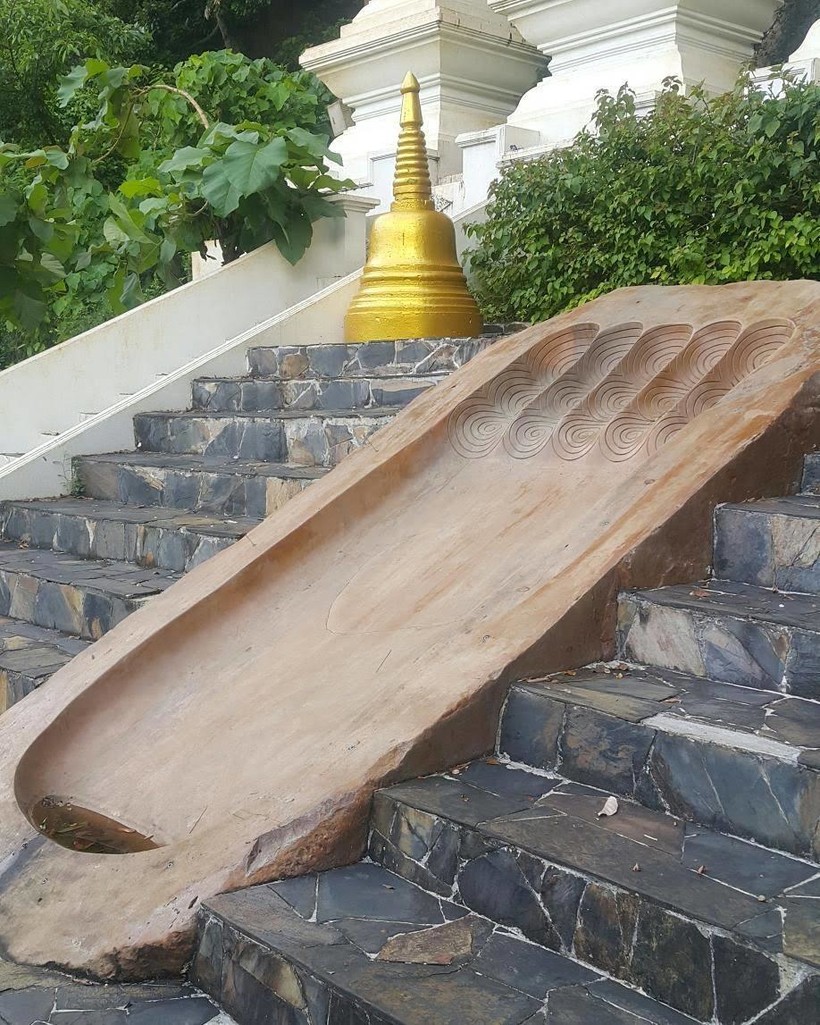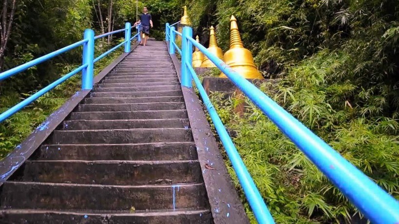 В нескольких метрах от самого храма начинается лестница на святую гору, на которой оставил свой след Будда. Верующие считают подъем на гору своего рода дорогой очищения. Действительно, преодолеть 1237 ступеней очень тяжело, а тропическое солнце и высокая влажность нисколько не облегчают путь.