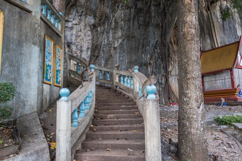 Обратный путь я бы не назвала легким. Порой встречаются настолько крутые лестничные пролеты, что приходится держаться за поручни. И самое необычное то, что именно на обратном пути на вас начинают нападать обезьяны, коих на горе великое множество. При нас с дамы ловкая обезьяна сняла сережку с бриллиантом. В мгновение ока она подскочила, расстегнула, сняла сережку и убежала.