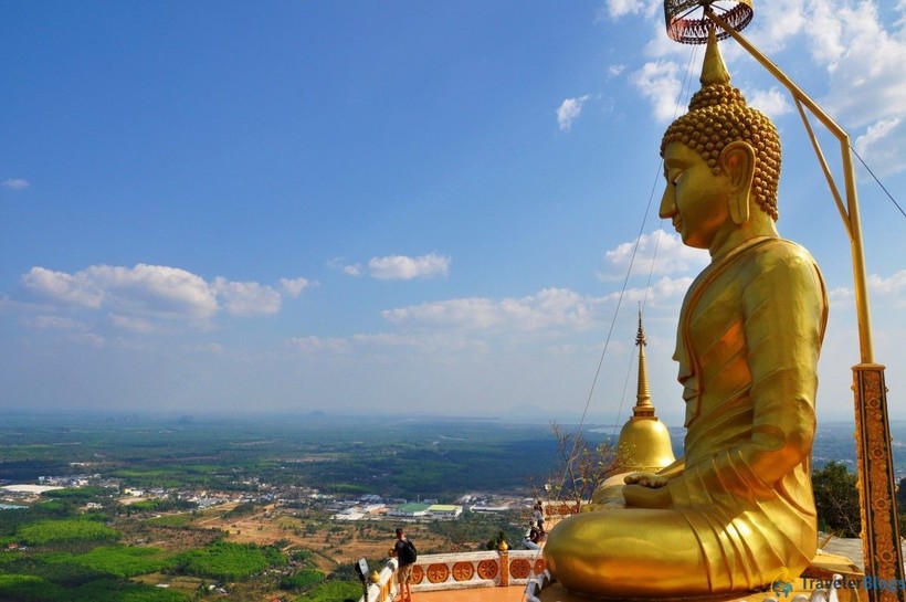 На вершине расположена небольшая пагода и беседка, где можно умыться и утолить жажду. Внушительное золотое изваяние Будды с присущим ему спокойствием взирает на окрестности, как бы приглашая присоединиться к нему.