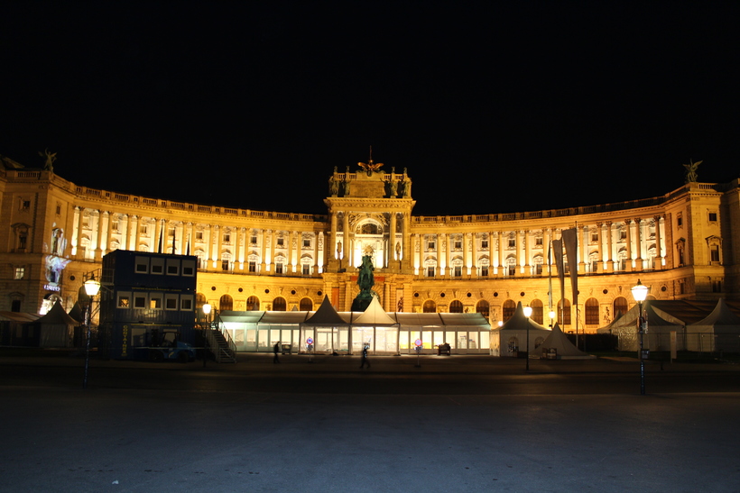 На площади Хельденплатц в этот день мы оказались дважды, днем, когда приехали осматривать Хофбург и поздно вечером, после поездки в Гринциг. Я нашла в себе силы и потащила мужа (а кто же сделает мое фото на фоне всей этой красоты???) осматривать все тот же Хофбург в вечерней подсветке!!!