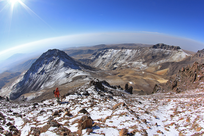 Вообще, наиболее короткий и популярный путь на вершину проходит с начинается на юго-западной стороне, возле озера Кари. Туда можно подъехать на машине, практически к самому подножью. А маршрут, по которому мы сейчас идем, с востока, от поселка Арагац, незаслуженно обделен вниманием. Он конечно, более длинный, но, на мой взгляд, гораздо более живописный. В чем я предлагаю вам убедиться. Кроме того, с востока подъем более плавный, можно хорошо акклиматизироваться.