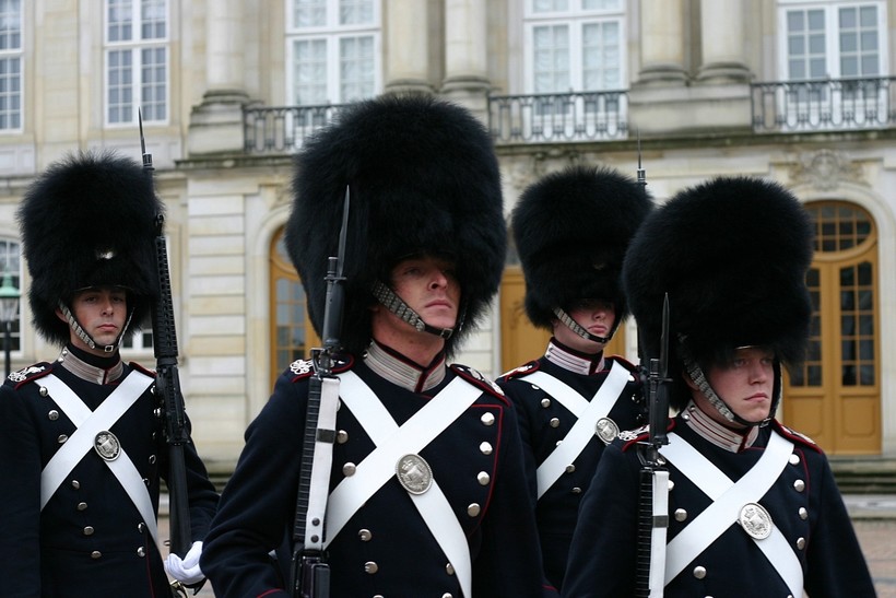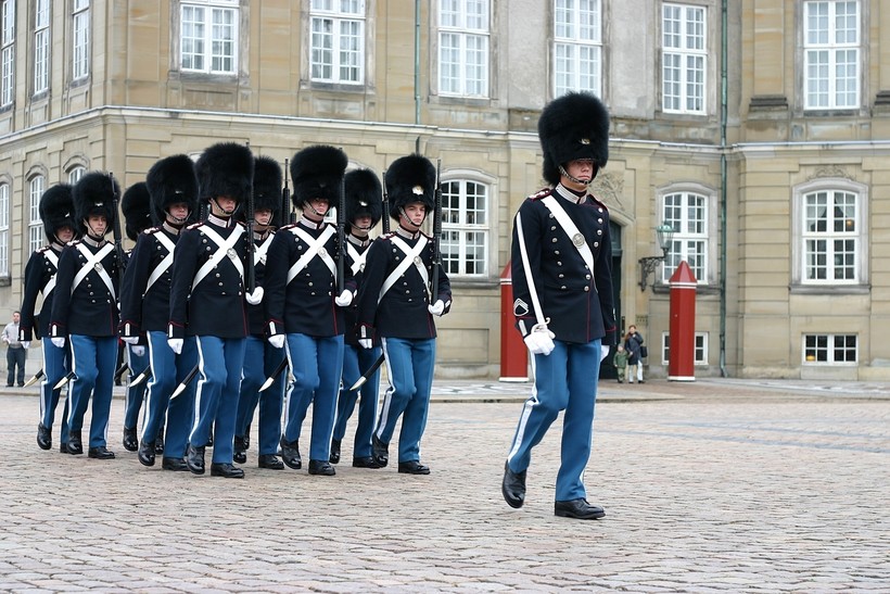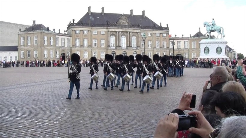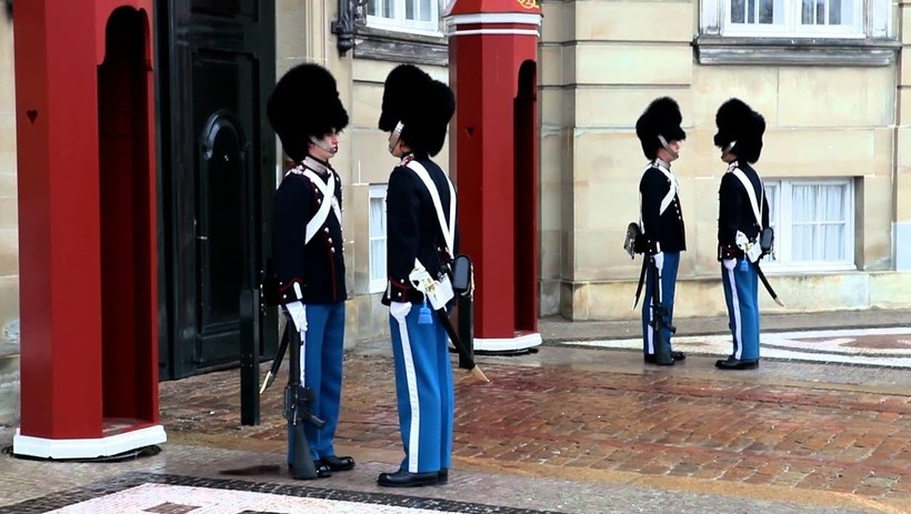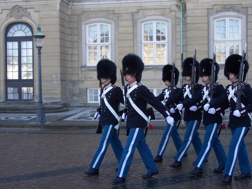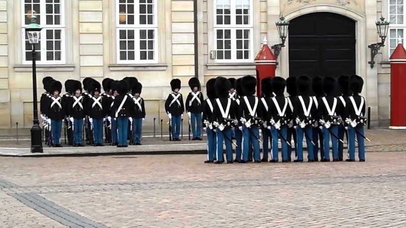 Смена караула Ее Величества у дворца Амалиенборг (Копенгаген, Дания)