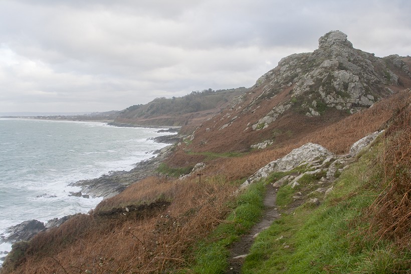 Вообще она очень длинная. Выходишь по указателю на тропу, и всё, дальше идёшь по ней вдоль берега. Периодически накрапывал дождик, день был довольно пасмурный, но погода в Нормандии меняется каждые 15 минут, а то и 5, нормандцы сами уже к этому привыкли, и у них куча шуток и приколов на эту тему. Поэтому мы рассчитывали, фактически, на всё: и на то, что нас может снести каким-нибудь ураганом, и на то, что нам придётся идти по жаре под палящим солнцем. В Нормандии в ноябре возможны оба варианта, мы с этим сталкивались.