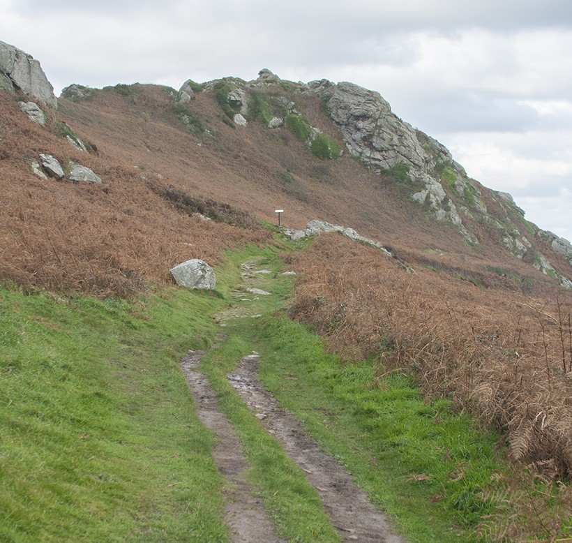 Ураганом нас, конечно, не унесло, но бывало, что дул очень сильный ветер. В тот день ветер всё-таки был умеренный. Мы шли по тропе. Она представляет собой довольно широкую дорожку, которая иногда просто грунтовая, иногда она покрыта галькой, иногда её составляют камни, встречаются различные мостики, лестницы и, в принципе, она оборудована довольно хорошо. Впрочем, это и понятно, потому что летом здесь довольно много туристов, которые хотят пройти путь таможенников, и его постоянно поддерживают в очень хорошем состоянии.