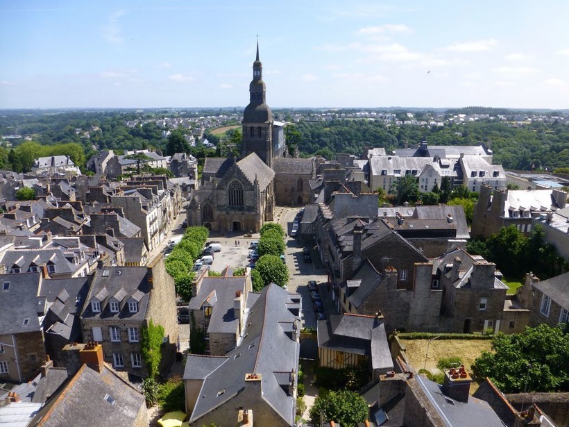 Сразу скажу, что для тех, кто не хочет платить за вход (а стоимость билета 4 EUR, детский – 2,5 EUR), можно довольствоваться видом на город с Крепостных стен, в принципе также впечатляет. Хотя, стоит признать, что с Башни совсем другой ракурс и высота. Отсюда открывается изумительный вид на крыши средневекового Динана, другие достопримечательности, обычные огороды местных жителей и другие окрестности города.