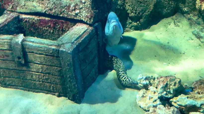 Но, к сожалению, я сейчас скажу о минусах. Он небольшой. То есть сначала я думала, когда мы приходили к этому зданию, что, наверно, оно уходит просто вниз, и часть экспозиций располагается на нижних уровнях. Однако, к сожалению, аквариум сам по себе невелик, и если вы ожидаете какого-то размаха, то его не будет.