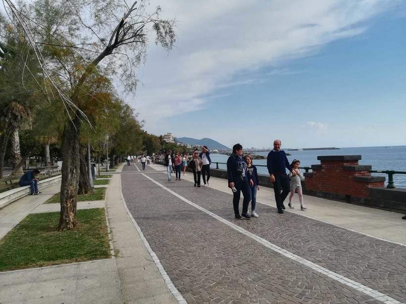 Широкий проспект не загроможден строениями, павильонами и киосками (как, например, на набережной у нас, в Ростове-на-Дону). Справа открывается панорама морского побережья с видом на соседний городок Вьетри… Что касается кафе, баров, магазинов, они тоже есть, конечно же. Но расположены немного в стороне, за проезжей частью, так что не мешают променаду.