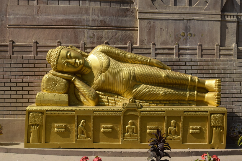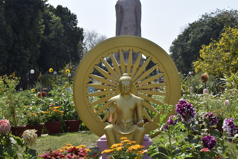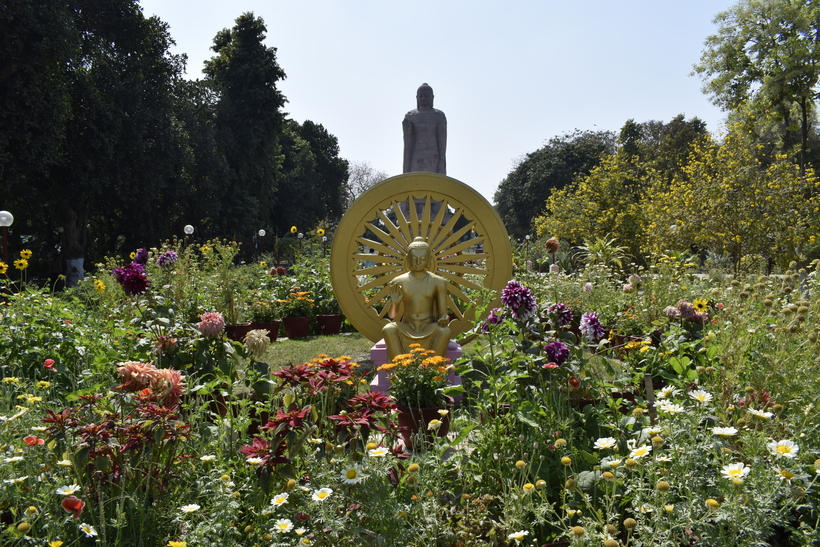 В парке Сарнатх очень чисто, зелено, ухоженные лужайки и разбиты фонтанчики. Я была в марте и все утопало в цветах. В этой зоне вы увидите много статуй Будды и его крытый павильон, в павильоне нужно снять обувь и оставить ее на улице.