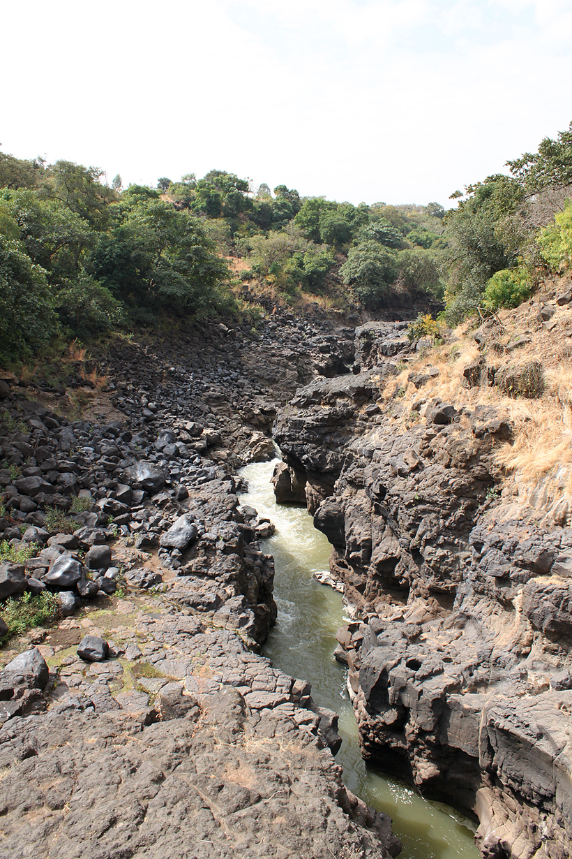 Голубой Нил вытекает из озера Тана довольно мощным потоком, который быстро приобретает порожистый характер; примерно в 35 км от начала река обрывается каскадом водопадов, самый высокий из которых имеет высоту около 45 метров.