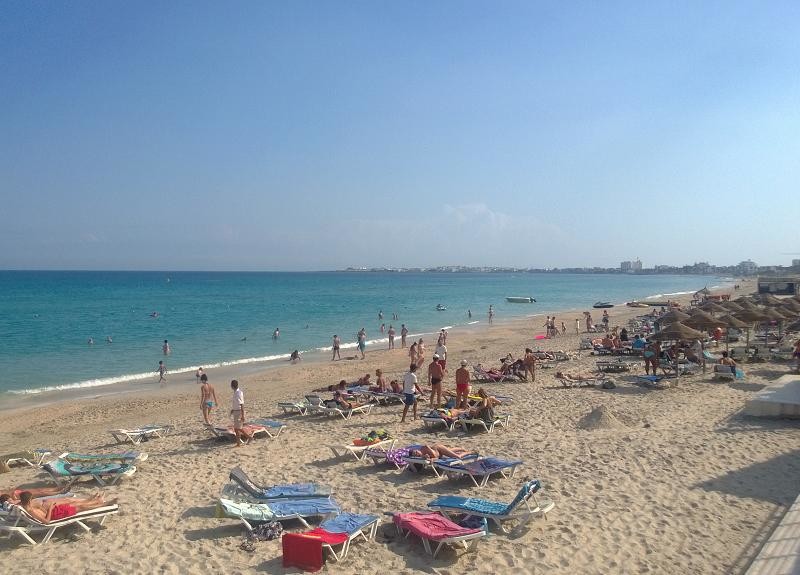 Мне очень понравилось, что пляж длинный и не перегорожен заборами, т.е. по нему можно гулять вдоль моря. Я не люблю валяться на лежаки тюленем, и спортивную форму тоже нужно поддерживать, так что регулярные прогулки для меня не в тягость, скорее, во благо. Так вот, за все время, что я ходил вдоль пляжа, туристы, делавшие то же самое, попадались мне не чаще раза в день. Почему-то большинство отдыхающих ужасно не желает удаляться от «родного» отеля. Конечно, система «все включено» манит и оторваться от нее сложно, но есть же такая штука, как любопытство. Не понимаю.
