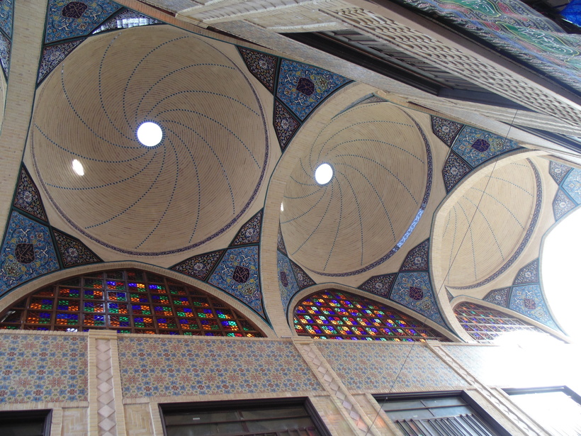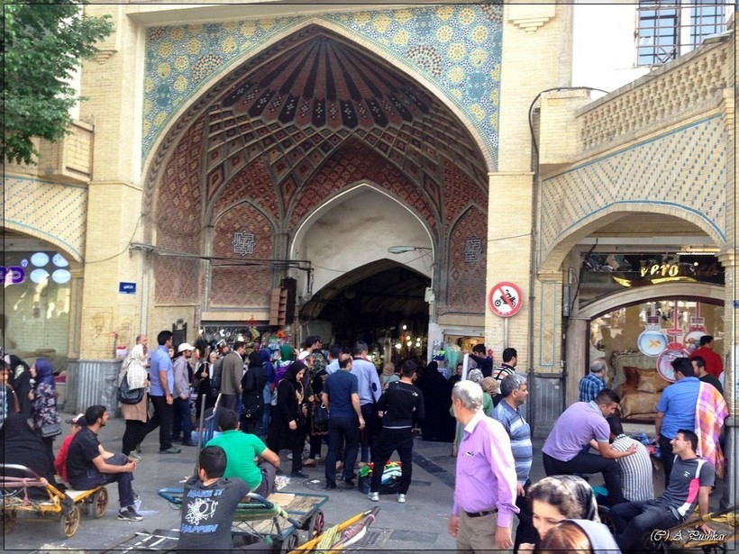 Это, наверное, самое колоритное место во всём городе. Прочувствовать дух Персии, можно только на базаре. Хотя, сам Тегеран, порой, напоминает один большой рынок. На улицах что только не продают: от часов, до ботинок. Барахольщики сидят вдоль пешеходных дорог, особенно много возле крупных перекрёстков и станций метро. Что было удивительно для меня, тут и в метро идёт бойкая торговля. Напоминает нашу пригородную в электричках, но здесь продавцы шныряют на порядок чаще. Собственно, на месте этого рынка и появился посёлок Тегеран. Это самая древняя его часть, основание. Рынок огромный. Один из самых крупных крытых рынков в мире. Входов и выходов в него не сосчитать, но самый узнаваемый - это, конечно, центральный вход, над которым написано "гранд базар".