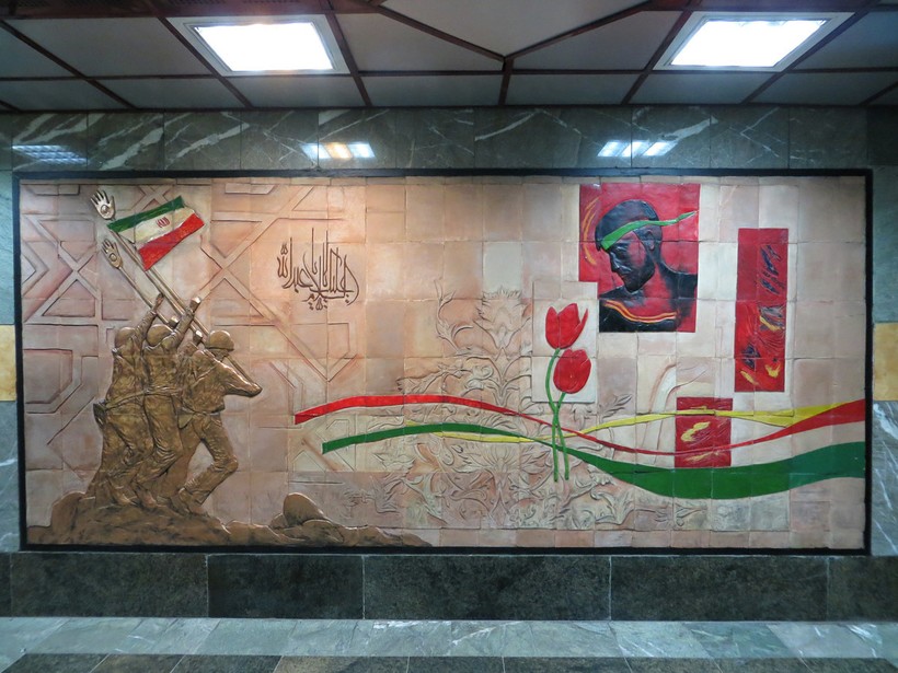 Сойдя на предпоследней остановке мы вышли в безлюдное место. Время было позднее, а уезжать нам надо было рано, поэтому напоследок решили посетить именно это сооружение. Возле метро располагается парк и кладбище Бехеште-Захра: погибших в Ирано-Иракской войне. Кстати, если вы проголодались, то вам не повезло. Кроме небольшого магазина возле метро, по близости ничего не обнаружил. А сам магазин не богат на съестное, поэтому пришлось довольствоваться сомнительного происхождения ход-догом.