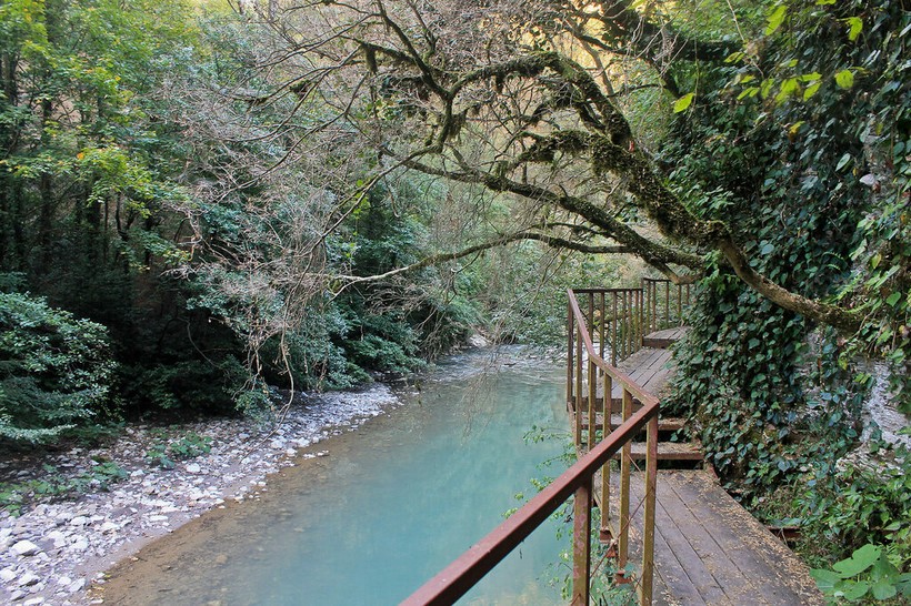 Мы любим его из-за тишины и отдаленности от туристической суеты. Именно тут находится замечательный санаторий «Электроника», в котором мы иногда отдыхаем, как в ведомственном от службы мужа. Излазив Агурские водопады, Орлиные скалы, Ахун, несколько раз поучаствовав в сплаве по речке Мзымте (даже в грозу) и посетив массу достопримов в округе, включая все Олимпийские новшества, нам очень хотелось отыскать что-то необычное, ещё нами не изведанное. Моя знакомая сочинка ещё загодя нашего поездки в Сочи подсказала один маршрут, но мы почему-то отложили его на потом. И вот это «напотом» наконец-то настало.