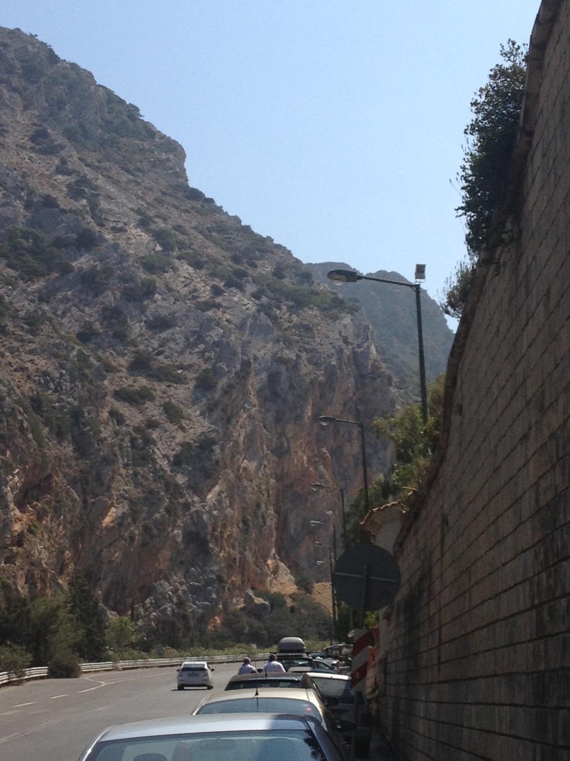 Есть мы здесь не планировали. Наш путь пролегал далее и обед входил в планы после посещения плато Ласити. Поэтому не присматривались, есть ли здесь места, где можно поесть. Но на территории и поблизости точно ничего нет. Да и вокруг одни отвесные скалы и горы с лесами. Кроме пролегающей среди них трассы особо нет ничего.