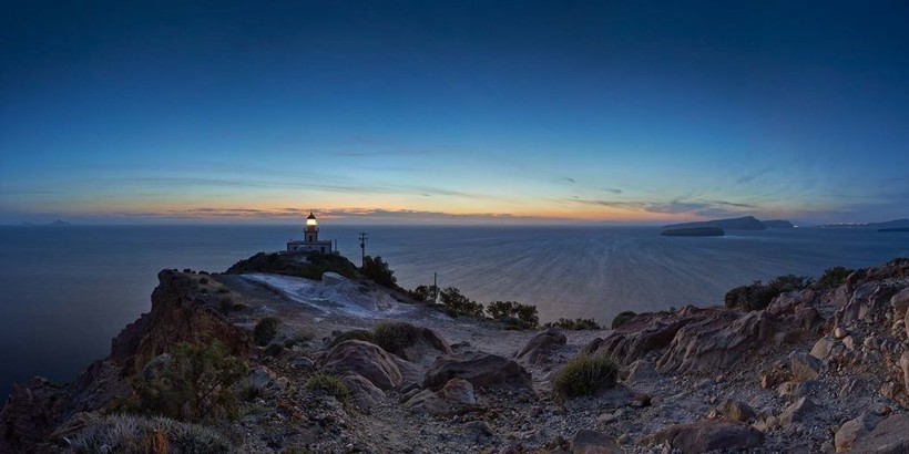С самого маяка и его окрестностей открываются нереальные виды на Эгейское море. Здесь не так много туристов, а вот фотографы любят это место. От этого Маяк становится более еще более загадочным. Отсюда видно и Вулкан Санторини.