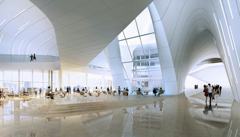 Постройка впечатляет. Кажется, в ней нет ни единой прямой линии и ни одного угла, она вся мягкая, плавная, обтекаемая. Добавьте к этому белый цвет стен и обилие стекла – и в результате центр смотрится космическим кораблем, приземлившимся в Баку.