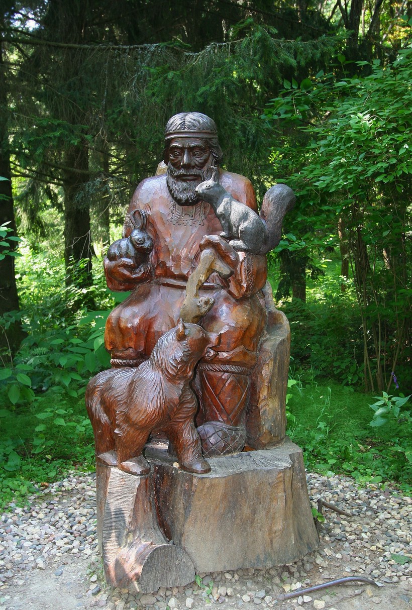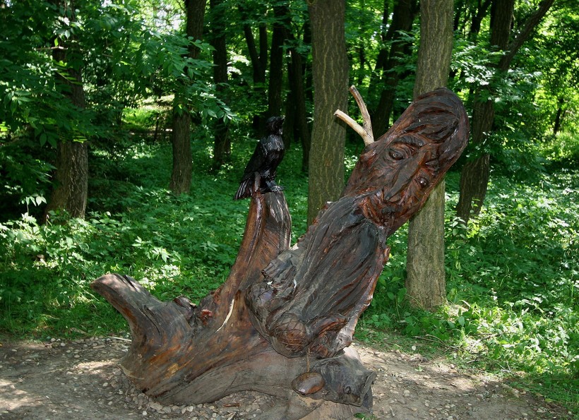 Скромный вход, красный серп и молот, сохранившийся около входа в дендрарий ещё, вероятно, с советских времён, проходная... Покупаете билет, заходите. И дальше - дорожки, растения, есть немного деревянных фигурок. Для человека, который интересуется природой, растениями, хочет посмотреть, как выглядят какие-то деревья и кустарники, здесь наличествуют 58 гектар чистого наслаждения.