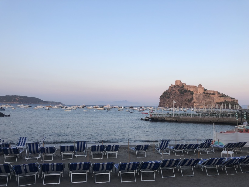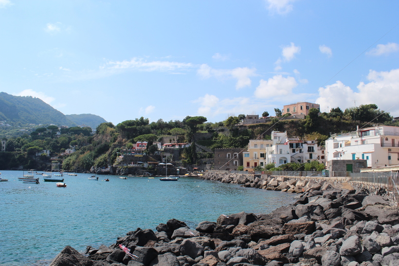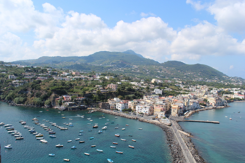 С дороги, которая теперь соединяет скалу с замком и остров открываются виды на два соседних городка. На одну сторону посмотрите Искья Порто увидите