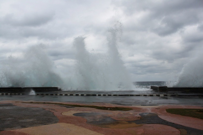 Ну, а море, точнее океан – это, кажется, главное, ради чего стоит приходить на Малекон. Набережная достаточно низкая, поэтому волны нередко перекидываются через бортик и заливают пешеходную и проезжую часть. В один из дней, когда мы пришли гулять по Малекону, волны были такими высокими, что мы не рискнули туда подходить.