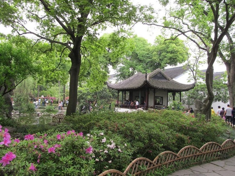 Чтобы погрузиться в сладостный мир плюсов этой достопримечательности, начну с минусов, которые вы встретите уже при входе в Сад скромного чиновника. Я говорю, о толпах туристов, причем не столько иностранных, а именно самих китайских. Внутренний туризм в этой стране активно развивается, да и население огромное, поэтому куда бы в Китае вы не приехали, с этим приходится мириться. Думаю, что Сад скромного чиновника стал таким раскрученным, потому что в нём есть все элементы, традиционные для таких достопримечательностей: беседки, огромные камни, цветы, павильоны и пруды.