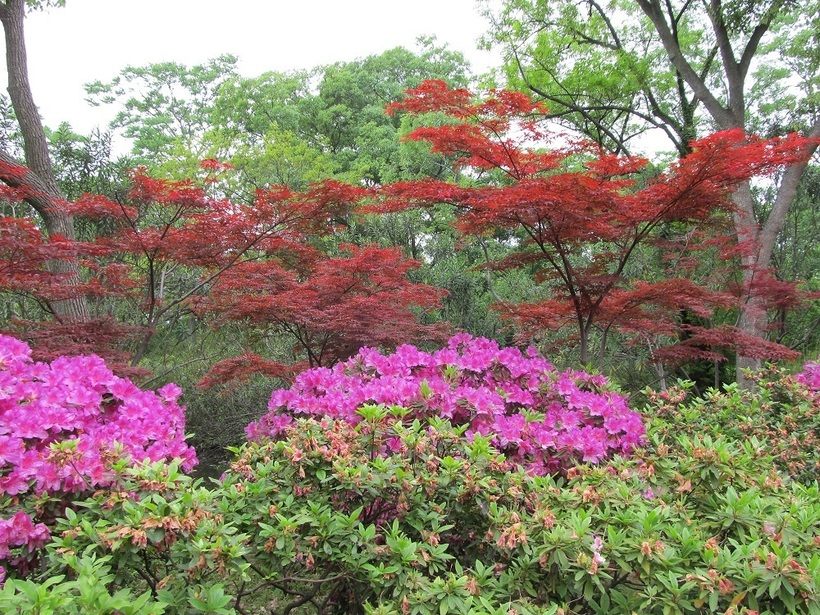 Лучшее время для посещения сада – с конца весны и до начала осени. Именно в это время много цветов, а июле ещё и лотосы распускаются. Мы были в мае, но всё равно было достаточно ярко и радостно, хотя легкая дымка присутствовала. Во время нашего посещения велась подготовка к выставке цветов, мастера готовили инсталляции и оформляли клумбы. Аромат цветов стоял волшебный!