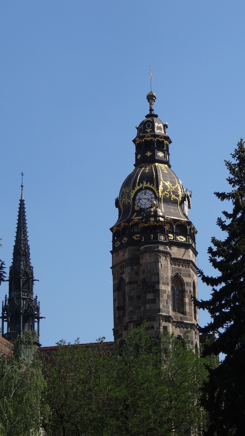 Главная деталь, выделяющая собор Святой Елизаветы на фоне других готических соборов — купол над колокольней. Это уже не готика, а барокко, и в плане цвета там используется эффектное сочетание черного с золотым.