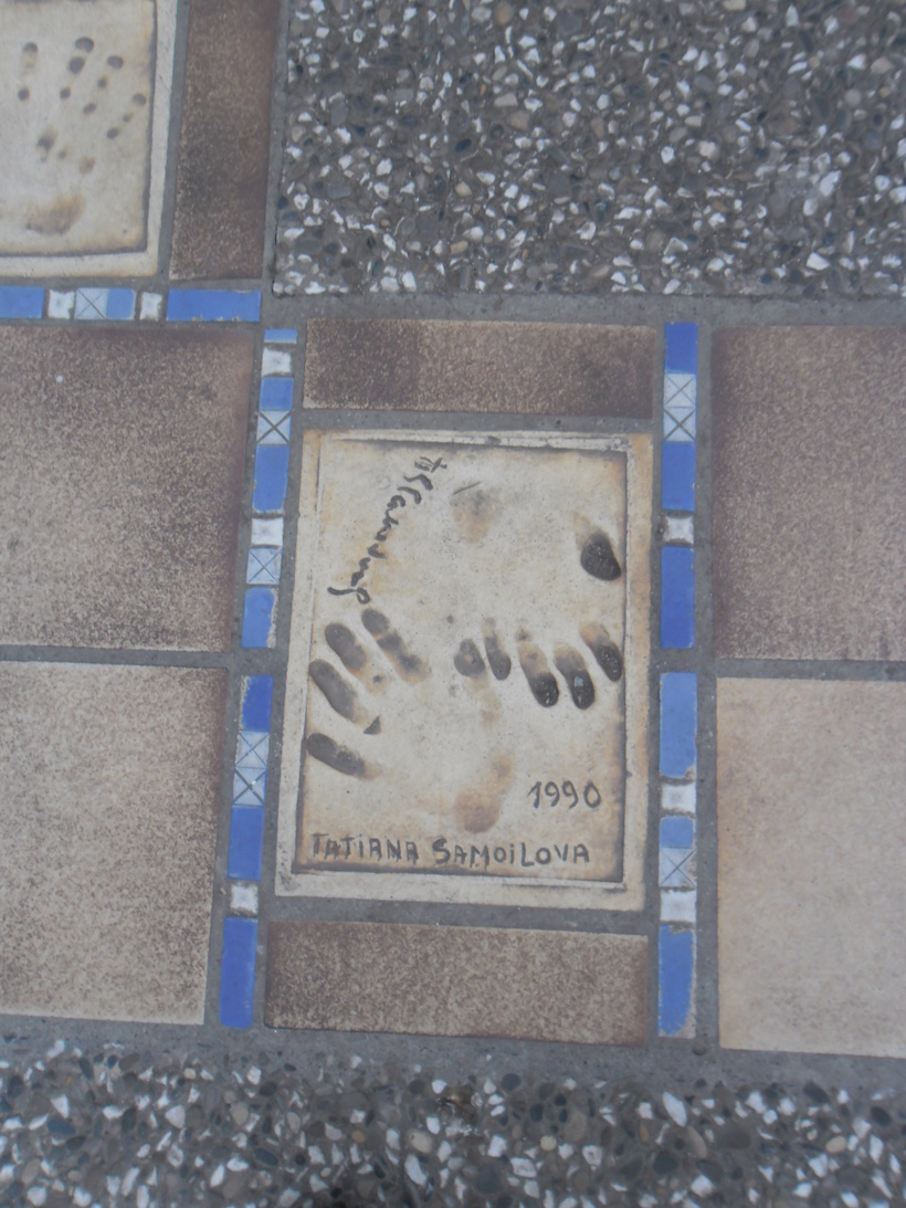 Говоря о Каннском дворце фестивалей и конгрессов, невозможно ограничиться лишь самим зданием. Внимания посетителей, конечно, заслуживает и то, что находится рядом. Это, в первую очередь, металлические плитки с отпечатками рук звезд мировой величины (среди них, кстати, есть отпечаток ладоней советской актрисы Татьяны Самойловой). Мы с подругой потратили немало десятков минут, расшифровывая автографы актеров, режиссеров и прочих деятелей кино.