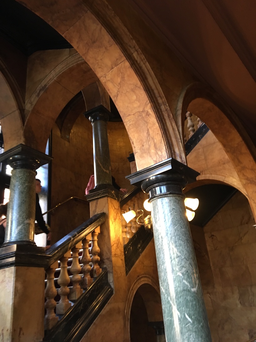Я пришла за час до начала спектакля, чтобы получше познакомиться с театром и это было очень предусмотрительно, даже можно было прийти ещё на полчаса раньше. Вдоль театра стояла длинная очередь на вход и встав в самый конец я минут пятнадцать потихоньку приблизилась ко входу и вошла в театр.
