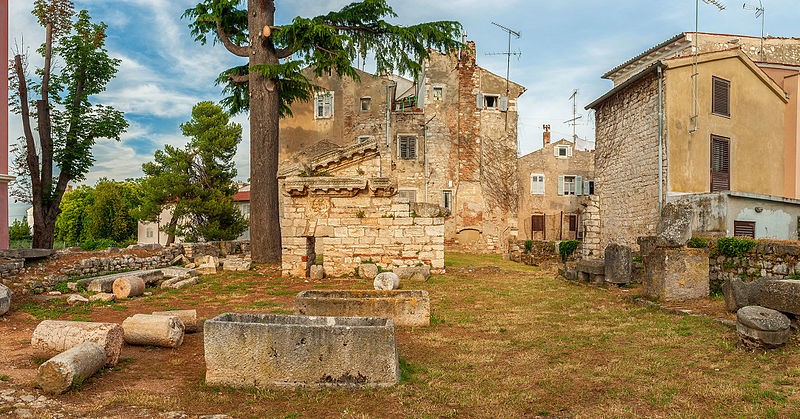 Город был основан в римскую эпоху как военный лагерь и сохранил первоначальную структуру. Кроме того, в старых кварталах сохранились многочисленные памятники античной эпохи. Колоссального, затмевающего все остальные достопримечательности амфитеатра, как в Пуле, в Порече нет, но арки, колонны, пилястры и древние камни встречались нам очень часто.
