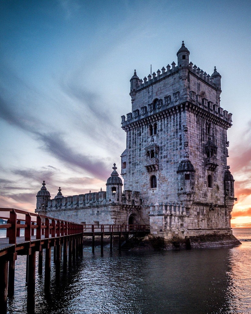 Башня построена в стиле мануэлино – это такая португальская разновидность готики, но именно что разновидность: иногда она очень похожа на «пламенеющую готику», а иногда всё-таки сильно отличается, добавляется свой оттенок и стиль, цвет, какие-то свои португальские национальные узоры, и посмотреть на это безумно любопытно.