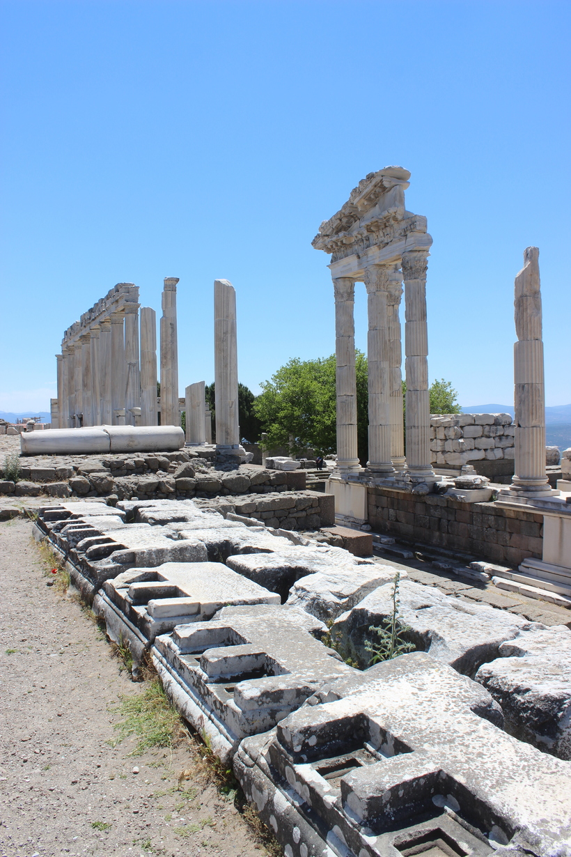 Самым главным местом города когда-то являлся храм Зевса, но сейчас на его месте я обнаружила дерево и небольшую возвышенность. Оказывается его останки хранятся в Берлинском музее. От библиотеки тоже ничего не осталось, кроме пары манускриптов. Она стояла рядом с храмом Афины. На его месте я нашла только пеньки от колонн, а главные храмовые ворота также вывезли немцы.
