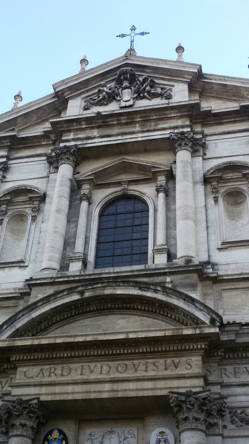 Когда я уже вышла из церкви Сант-Иньяцио, решила сфотографировать ее. Но, оказалось, что на обычную камеру в телефоне невозможно снять фасад целиком, только частями. Потому что площадь слишком маленькая, не отойдешь подальше.