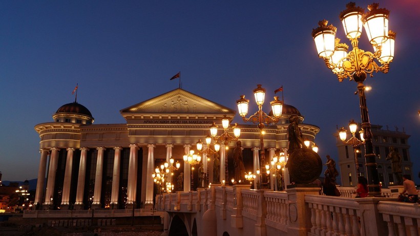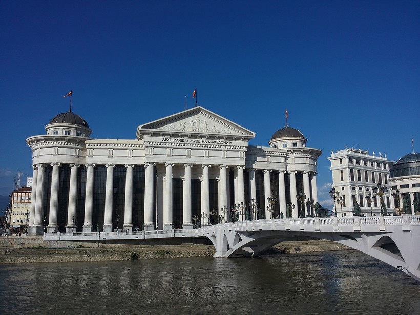 На самом деле, мы решили зайти в археологический музей в Скопье от нечего делать. Но совсем не пожалели об этом! Археологический музей Македонии, как и большинство достопримечательностей Скопье, находится в центре, на набережной - его невозможно не заметить, он почти всегда по пути. Поэтому мы туда и зашли. Большое красивое здание с высокими колоннами имитирует античность, но на самом деле было построено уже в XXI веке. Особенно эффектно оно выглядит ночью.
