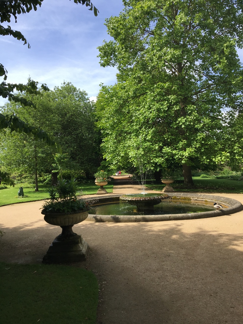 Медленно прогуливаясь по Оксфорду я дошла до Ботанического сада. Билет стоил недорого. И вот он сад. Ботанический сад очень интересный, он небольшой, но поделён на тематические зоны. Фронтальная часть парадная, такой огромный квадрат, стена которого высокие вечнозеленые растения. Внутри в основном деревья, в центре небольшой фонтан.