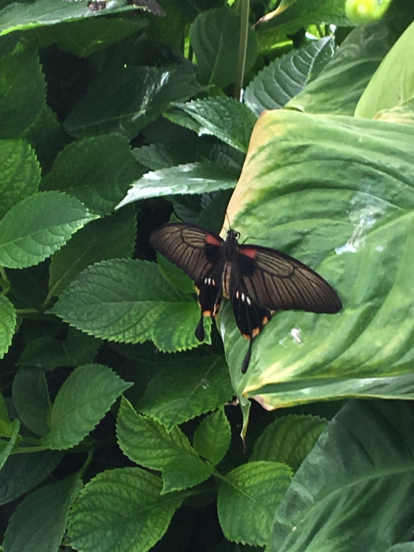 Павильон с бабочками оказался настоящим сюрпризом. Почему то я не ожидала его увидеть в Ботаническом саду. Он достаточно большой и бабочек много очень разных. Кое где стоят тарелки с нарзанными апельсинами, на них сидят сразу несколько бабочек. А остальных нужно высматривать на растениях.