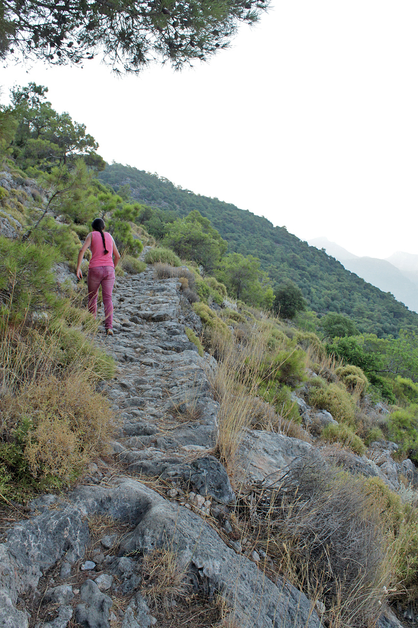 Если вы остановились в прибрежной, курортной части Олюдениза, то такой путь, пожалуй, самый логичный. Если же вы едете из Фетхие или основной части Олюдениза, то удобнее добраться на долмуше (местная маршрутка), выбирайте ту, что с надписью Kayaköy либо Kaya. Остановка прямо напротив входа. Вход, как я уже писал, 5 лир.
