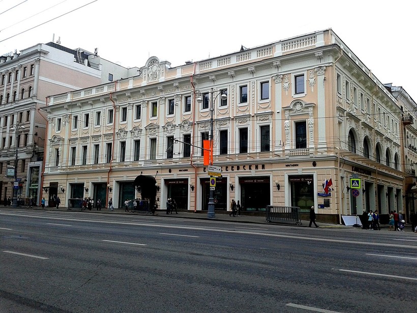 - В доме 14 на Тверской улице находится знаменитый «Елисеевский» магазин, сооружённый в самом начале ХХ века. Если честно, я уже давненько не заходила внутрь, так что объективно судить о нём не берусь. Но я слышала, что там сейчас нечто, вроде обычного супермаркета, но стоит всё в разы дороже. Советую зайти внутрь этого здания не с целью шопинга, а чтобы полюбоваться красивыми росписями и лепнинами на стенах.