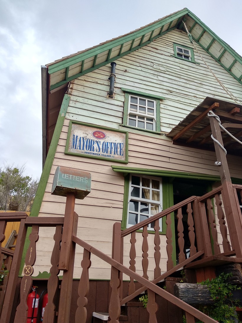 Всё здесь - это симпатичные остатки декораций старого фильма о моряке Попае и его деревне. Есть свой порт, полиция, почта, кинотеатр и все остальное, что полагается деревне - только бутафорское.