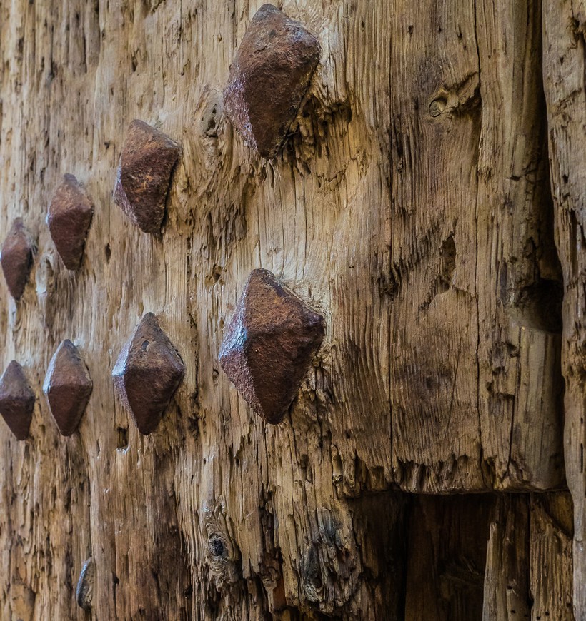 - Старинные двери. Даже если они относятся и не к концу XIV века, когда были воздвигнуты ворота, при одном взгляде на это задубевшее от времени дерево проникаешься духом старины.